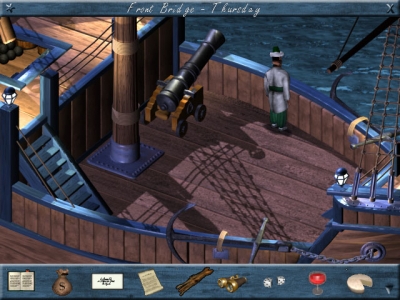 Description:Jumping over crates, and boards a ship leaving his pursuers to shake their fists in the air. The next morning, Abdullah, an emissary to the Sultan, receives a message asking him to recover a stolen artifact that is believed to be aboard the vessel he is traveling on, the Glutomax. The Glutomax will take a week before arriving at Hyade Island. Until then, Abdullah will have to discover which of the suspicious passengers has stolen the Eye of the Kraken. He must work quickly though, because if the thief makes it to the Island, it will possible for him to awaken the Great Kraken and rule the world. Screenshots: