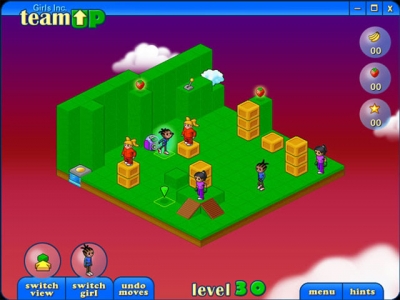 Description:In TeamUp, you help a team of characters solve puzzles by working together and using their unique abilities; one can jump, one can slide boxes, and another can throw other characters. As you progress through the 50 levels of puzzle-adventure mode, you'll encounter ramps, elevators, chutes, rafts, fruit bonuses and more! In challenge mode, try to solve the puzzles in as few moves as possible. You can even design your own levels and share them with other players! Screenshots: